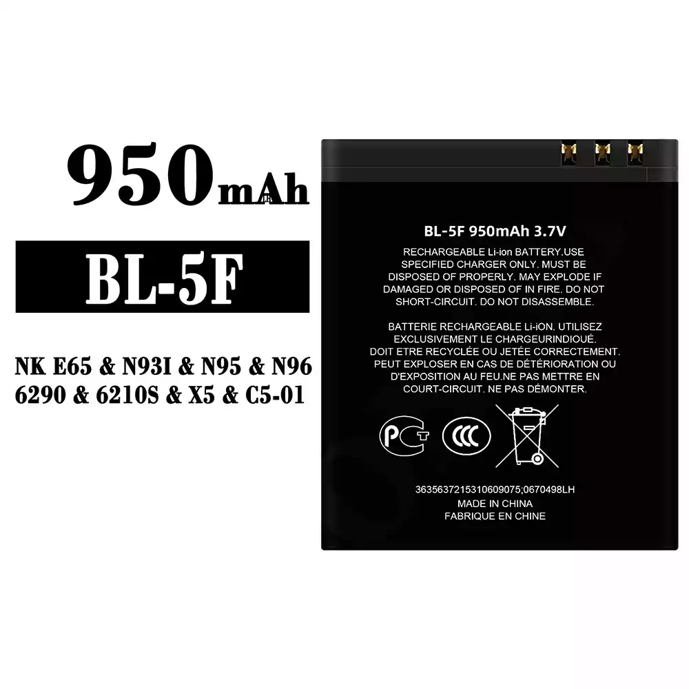 Akku BL-5F für Nokia NK E65 / N93I / N95 / N96 / 6290 / 6210S / X5 / C5-01